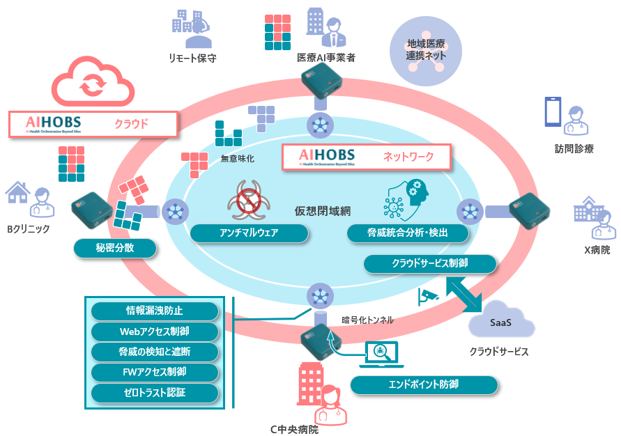 医療情報などの機微な情報を複数データに分散し、無意味化したデータを送受信することでデータの高度な秘匿性を担保します。